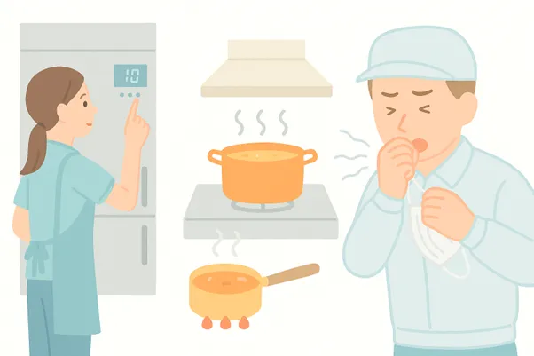 過去の事例では、約7割が「ヒューマンエラー」。冷蔵庫の温度設定を変え忘れた、加熱時間を短くした、マスクを外して咳をした…。ほんの小さな油断が大きな事故に繋がります。