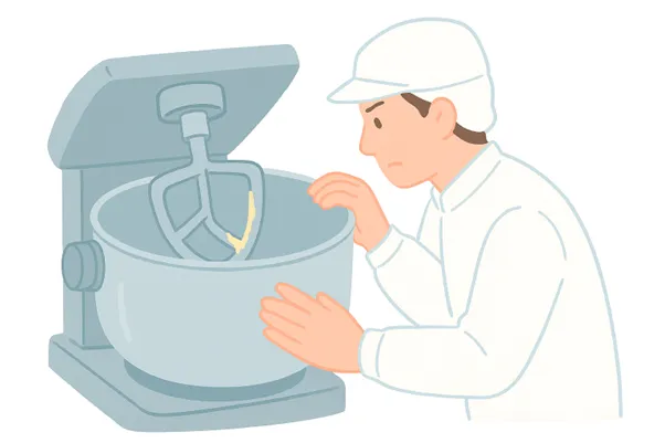 再開前に最優先で確認すべきポイントは、ミキサー・カッター内部の洗浄残り、ベルトコンベアの裏側、配管のドレン・残水、包装機のヒーター周りの油脂