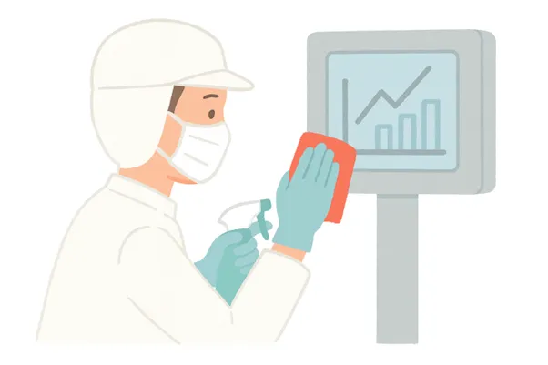 実際に多いのは、パレットの取っ手・エアコンフィルター・タッチパネル・社員が使う共有のボールペン、という“一見関係ない場所”の「ふきとり検査」は、工場の見えない弱点を浮き彫りにしてくれます。
