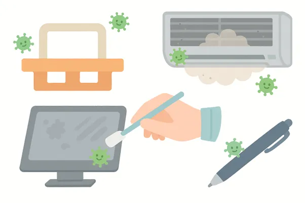 とくに高頻度接触部位(ドアノブ・スイッチ・台車の取っ手)は忘れがち。