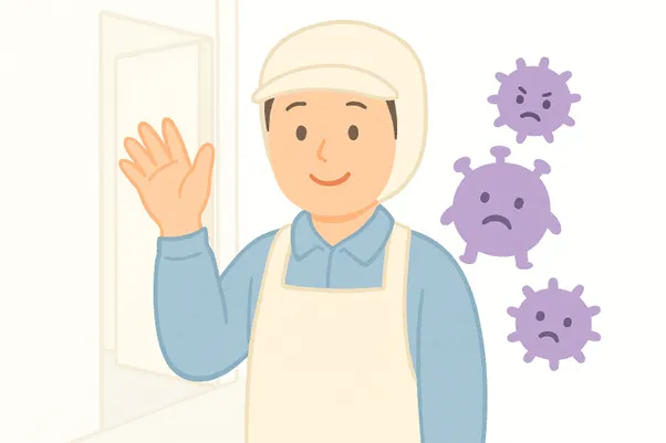 検便だけでは不十分。再発防止のためには、手洗い強化・トイレ〜調理場の動線ルール・マスク・手袋の着用の徹底が欠かせません。
