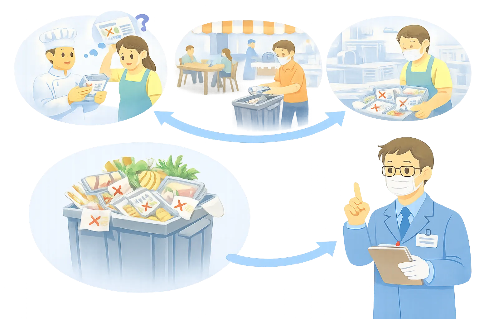 特に外食・中食・食品製造の現場では、“安全を守るため”に、必要以上に捨てているという矛盾が起きているのです。