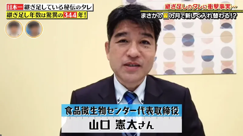 みんなが一度は疑問に思う【継ぎ足しのタレが腐らないのはなぜ?】を調べるコーナーで、秘伝のタレで細菌が発生し難い理由についてインタビュー協力を行いました。